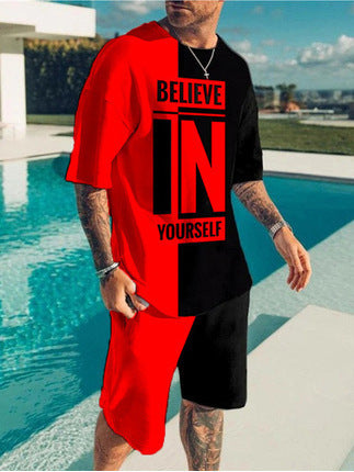 Simple Men's 3DT Shirt Short Sleeve Plus Shorts Oversized